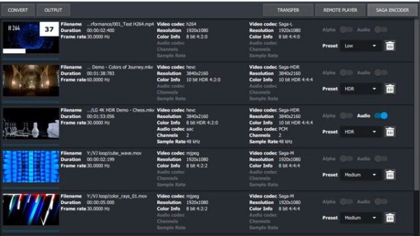 A ChamSys saját fejlesztésű SAGA kodekje 10-bites színmélységet és alfa-csatornát biztosít, miközben alacsonyabb lemezhasználatot és gyorsabb médialejátszást kínál, mint a szabványos HAP kodek.